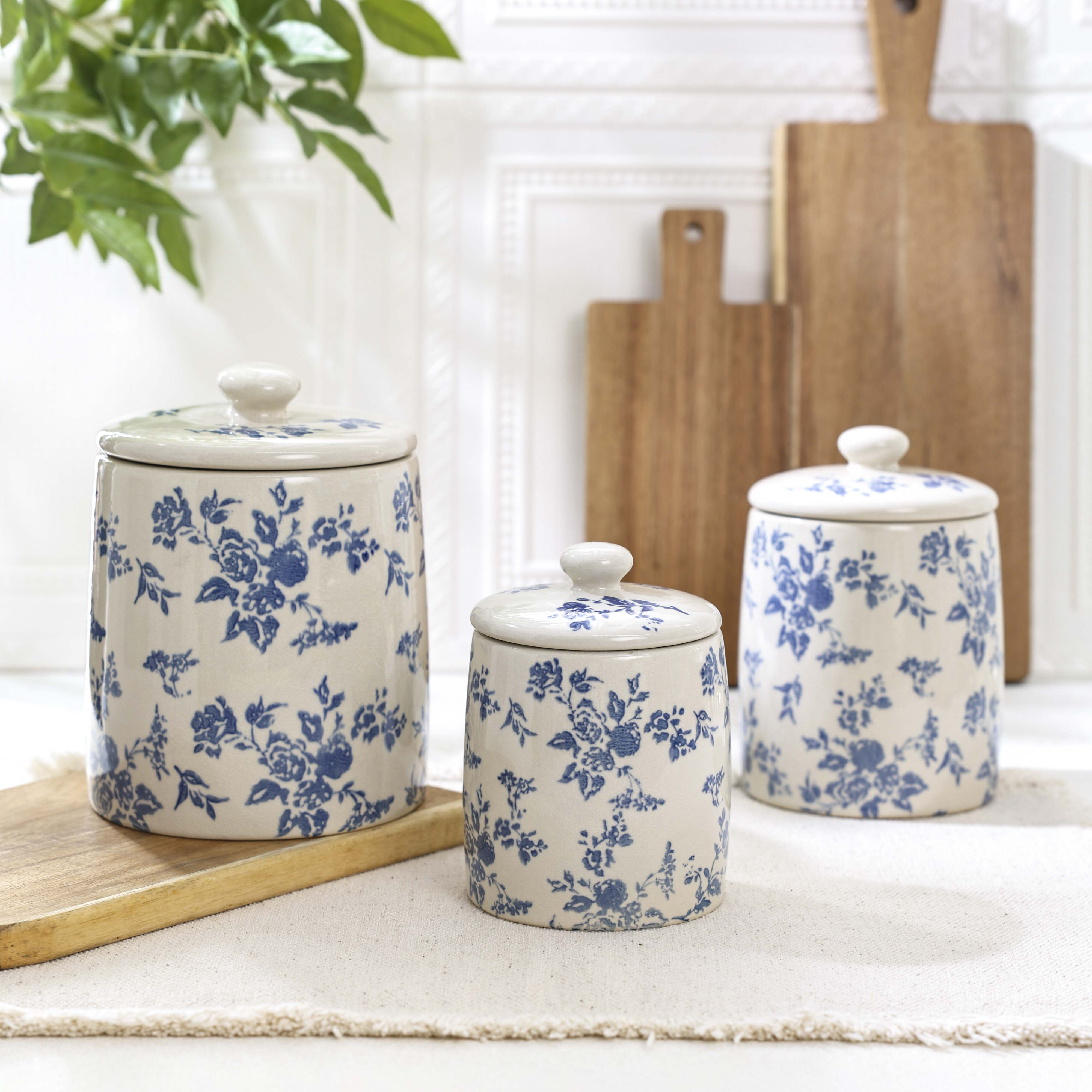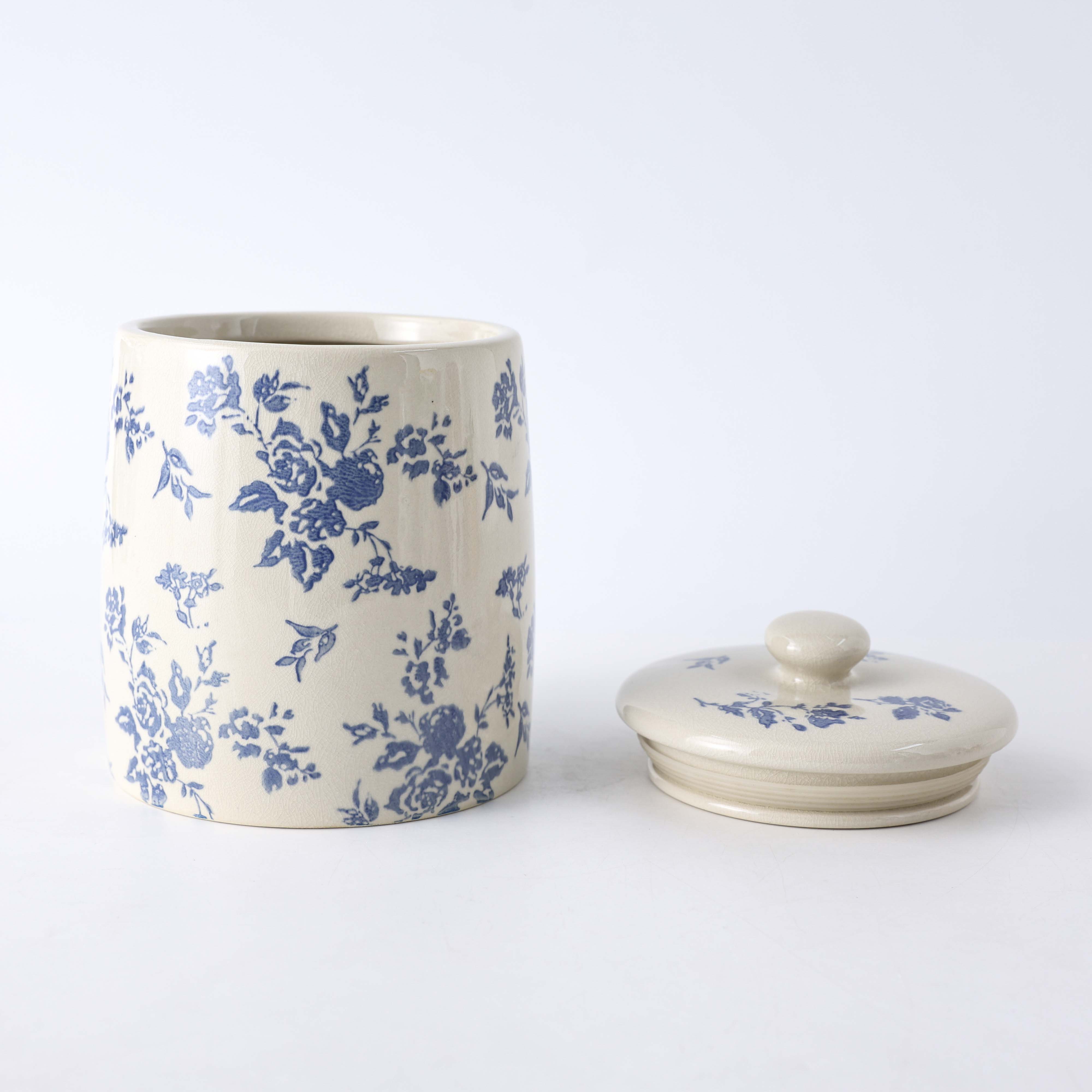 Adorned with exquisitely crafted blue floral motifs, this ceramic set weaves a vintage, organized charm into your kitchen. Encompassing three differently sized storage jars, each piece merges timeless artistry with ceramic’s durable functionality. Whether for storing candies, cookies, or adding a decorative touch to your kitchen, it stands as a stylish addition, turning your storage routine into an elegant celebration brimming with classic aesthetic appeal.
